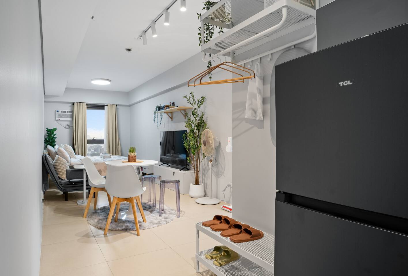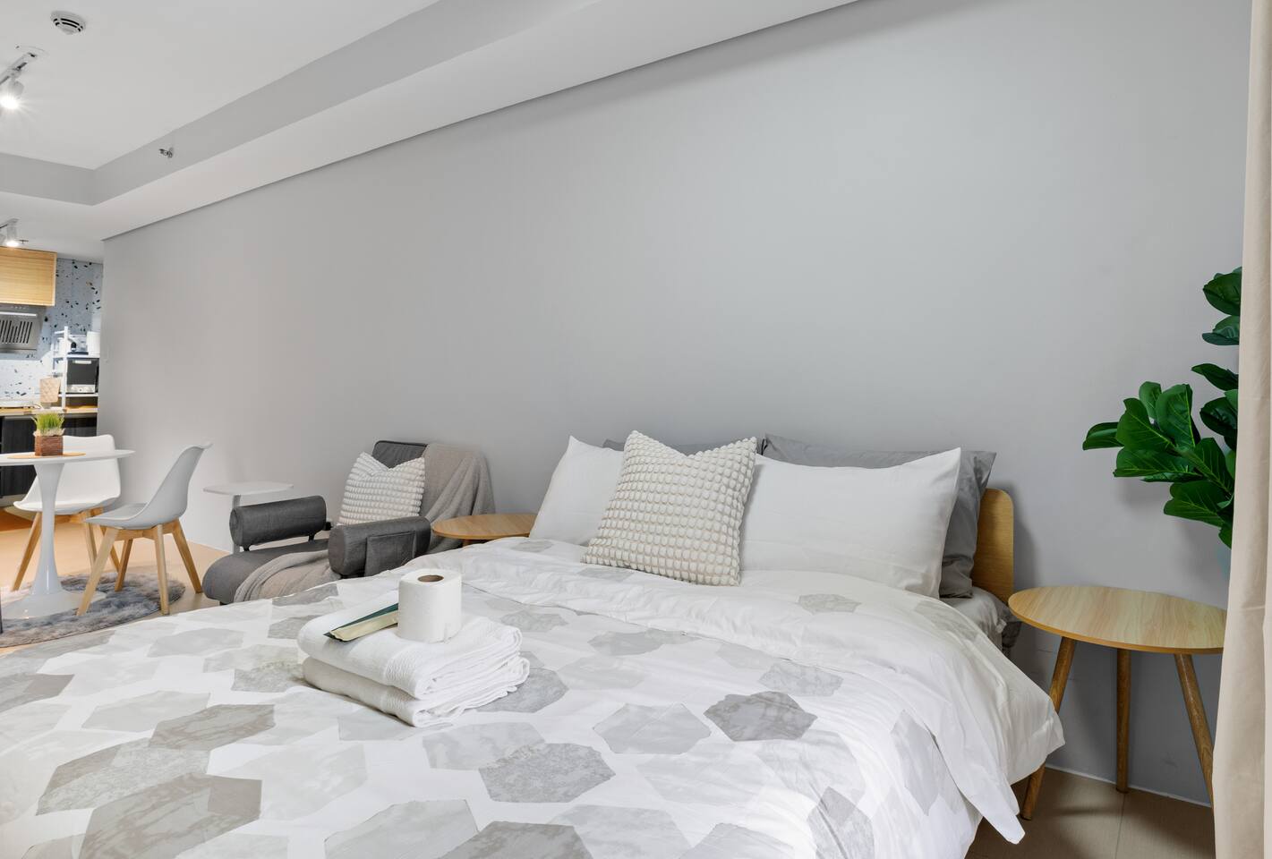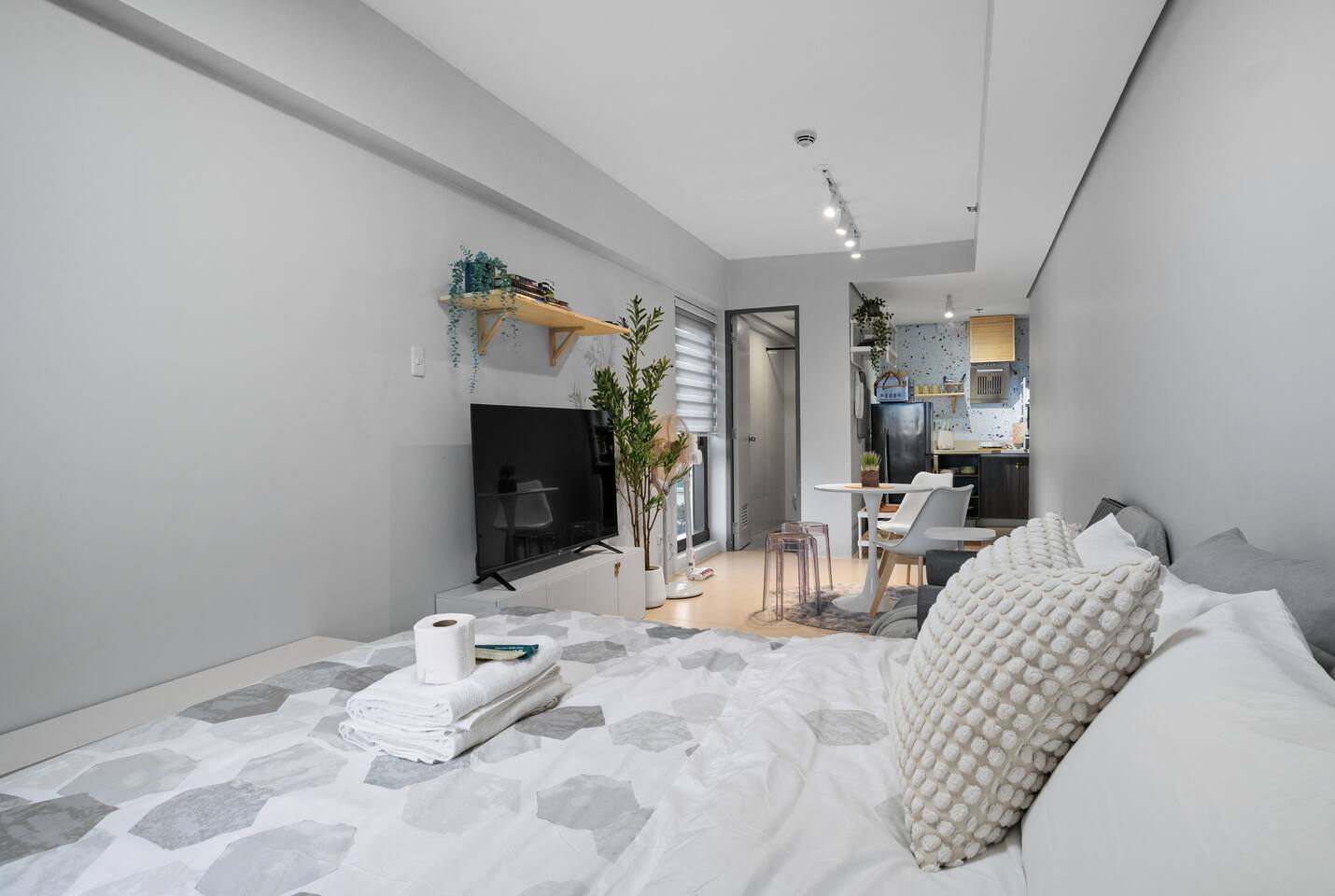 Unwind in this light-filled Scandinavian haven at Studio 7 Filinvest (residential building) This compact studio is thoughtfully designed to maximize comfort and functionality. The neutral palette, airy white tones, soft wood textures, and clever storage keep the space serene and uncluttered. With a dedicated sleeping corner, a cozy living nook - this studio offers a calm escape in the heart of Quezon City. PAY PARKING is available at the Basement of the building.