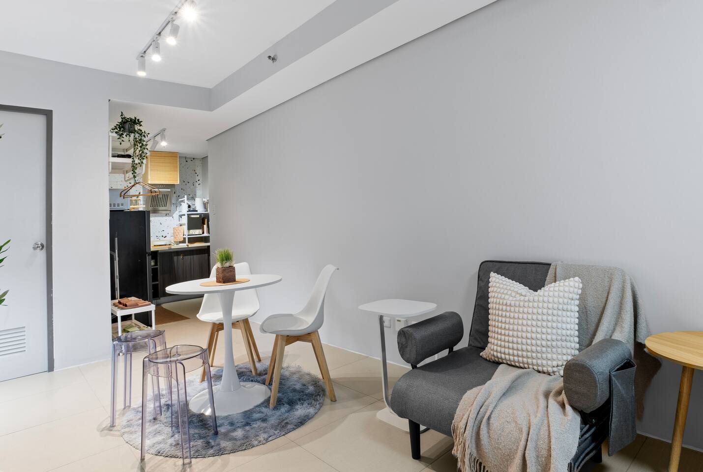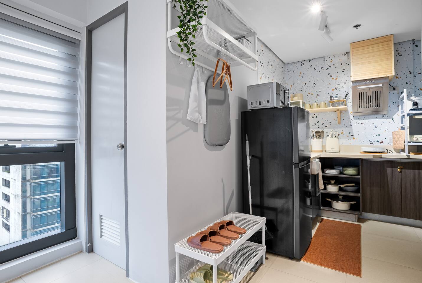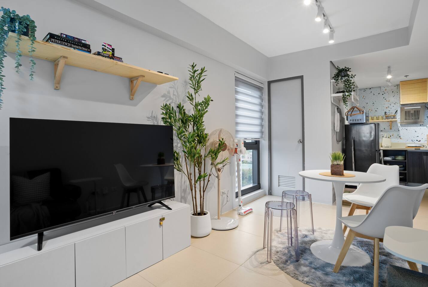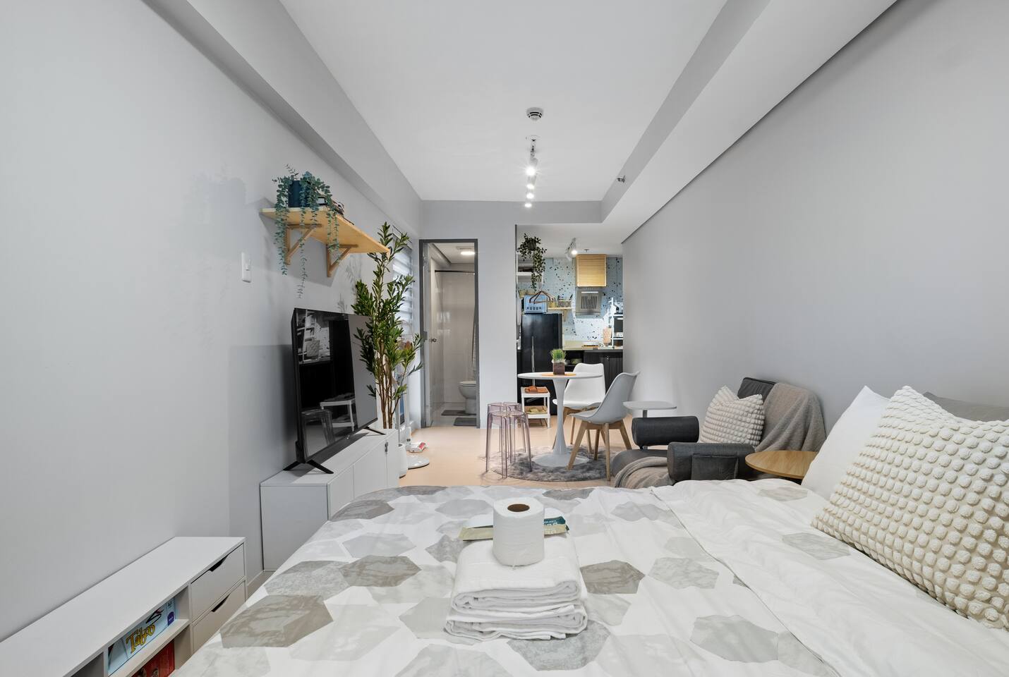 Unwind in this light-filled Scandinavian haven at Studio 7 Filinvest (residential building) This compact studio is thoughtfully designed to maximize comfort and functionality. The neutral palette, airy white tones, soft wood textures, and clever storage keep the space serene and uncluttered. With a dedicated sleeping corner, a cozy living nook - this studio offers a calm escape in the heart of Quezon City. PAY PARKING is available at the Basement of the building.